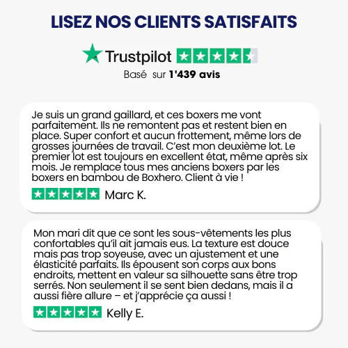 Les boxers BoxHero 1.0 sont conçus pour durer au moins 180 lavages sans perte de forme ni de couleur. Nous offrons une garantie anti-déchirure de 6 mois.