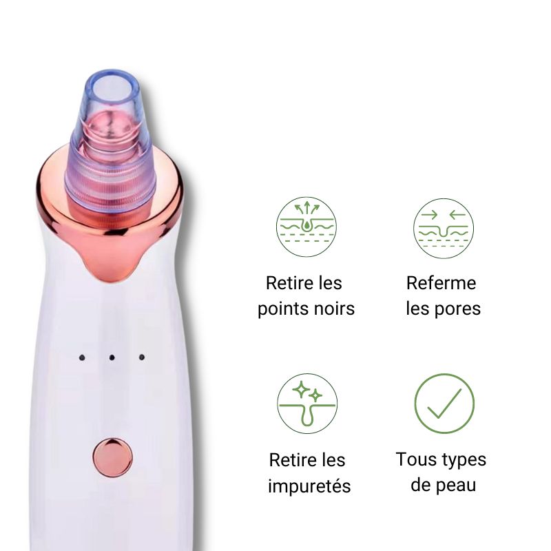 L’éliminateur de points noirs aspire littéralement toute la saleté de vos pores, enlevant ainsi les points noirs de votre peau rapidement et sans aucune douleur. Le système de ventouse dû à l’aspiration créer un massage doux et stimule la circulation sanguine, raffermissant la peau et resserrant les pores.
