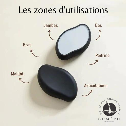 Sa surface nano-cristaline assure une épilation ultra-douce pour une peau lisse. Elle exfolie les cellules de peau mortes pour une peau nette et saine. La Gomme Dépilatoire Gomépil™ prend soin de votre peau, comme en institut.