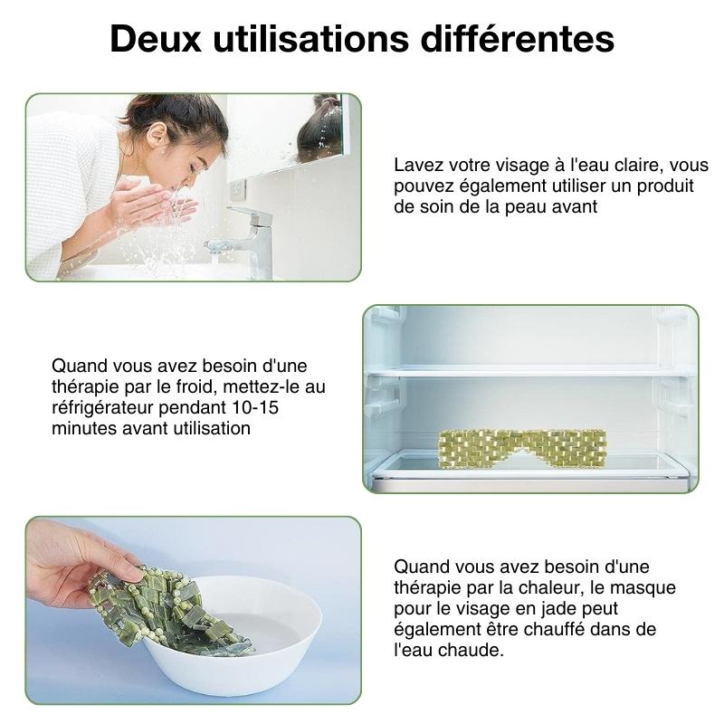 Le Masque de Jade naturel éclat jeunesse n'est pas seulement un masque, c'est un voyage de rajeunissement pour votre peau. Développé avec la sagesse de la médecine traditionnelle et infusé de remèdes à base de plantes, il cible le système lymphatique, les fascias et les muscles du visage pour combattre les rides, le teint irrégulier et la perte de fermeté. Ressentez la fraîcheur naturelle du jade, qui favorise la circulation, réduit les gonflements et encourage le métabolisme cellulaire, rendant votre peau plus jeune de plusieurs décennies.