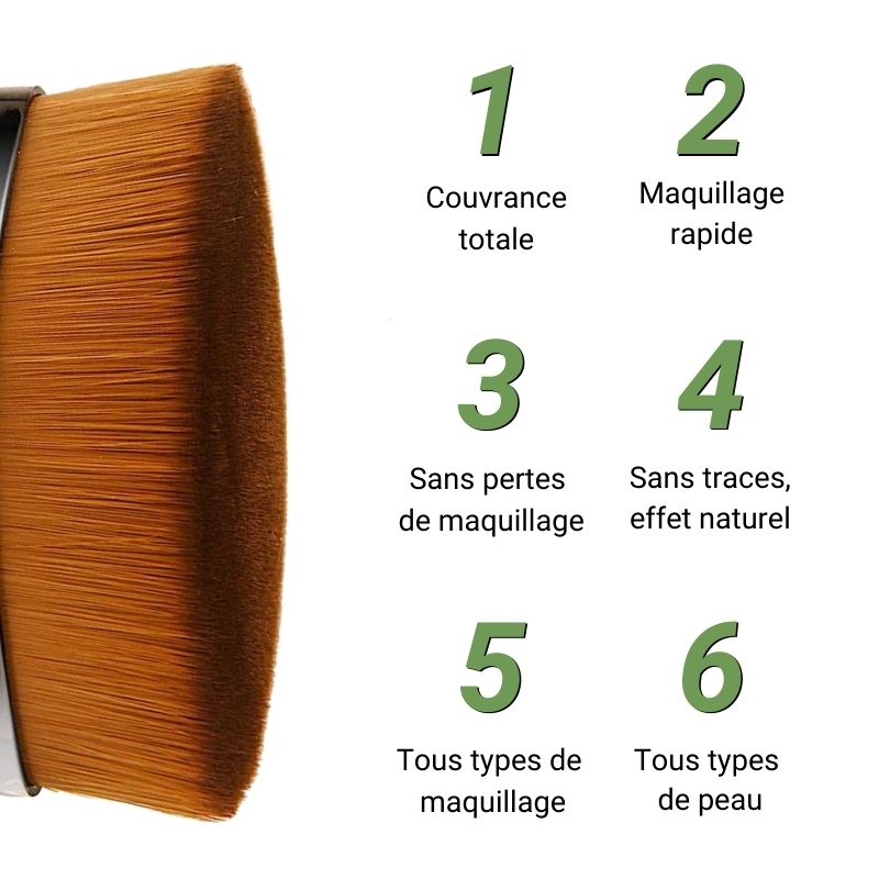 Vous pouvez utiliser le maquillage le meilleur et le plus cher au monde. Mais si vous n'utilisez pas un bon pinceau pour l'appliquer, le maquillage aura un mauvais rendu. Le pinceau teint parfait offre une application sans faille, une couvrance totale, avec un finit naturel, tout en réduisant le temps d'application. Ce pinceau de qualité professionnelle contient plus de 198 000 poils synthétiques pour un résultat zéro défauts, sans traces et résidus. Adapté à tous types de peau.