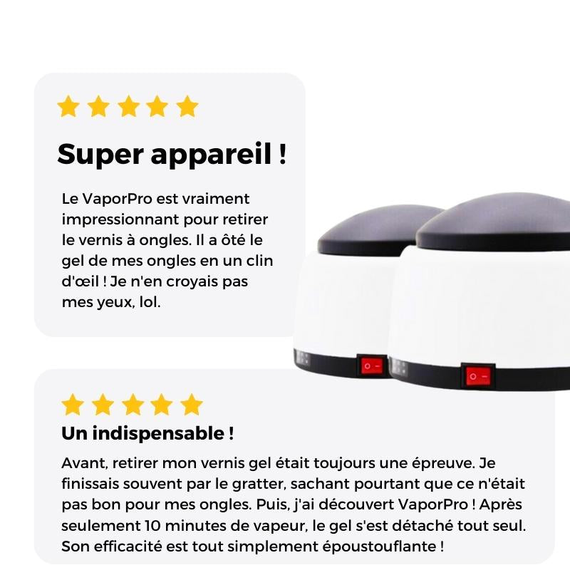"Avec VaporPro, dire adieu au vernis n'a jamais été aussi simple. Un vrai gain de temps !" - Clémence P., Achat vérifié